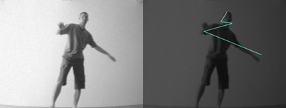 Hauptdiplom an der HGK Basel. Durch Körperbewegungen werden verschiedene Bilder interaktiv erzeugt und gesteuert.